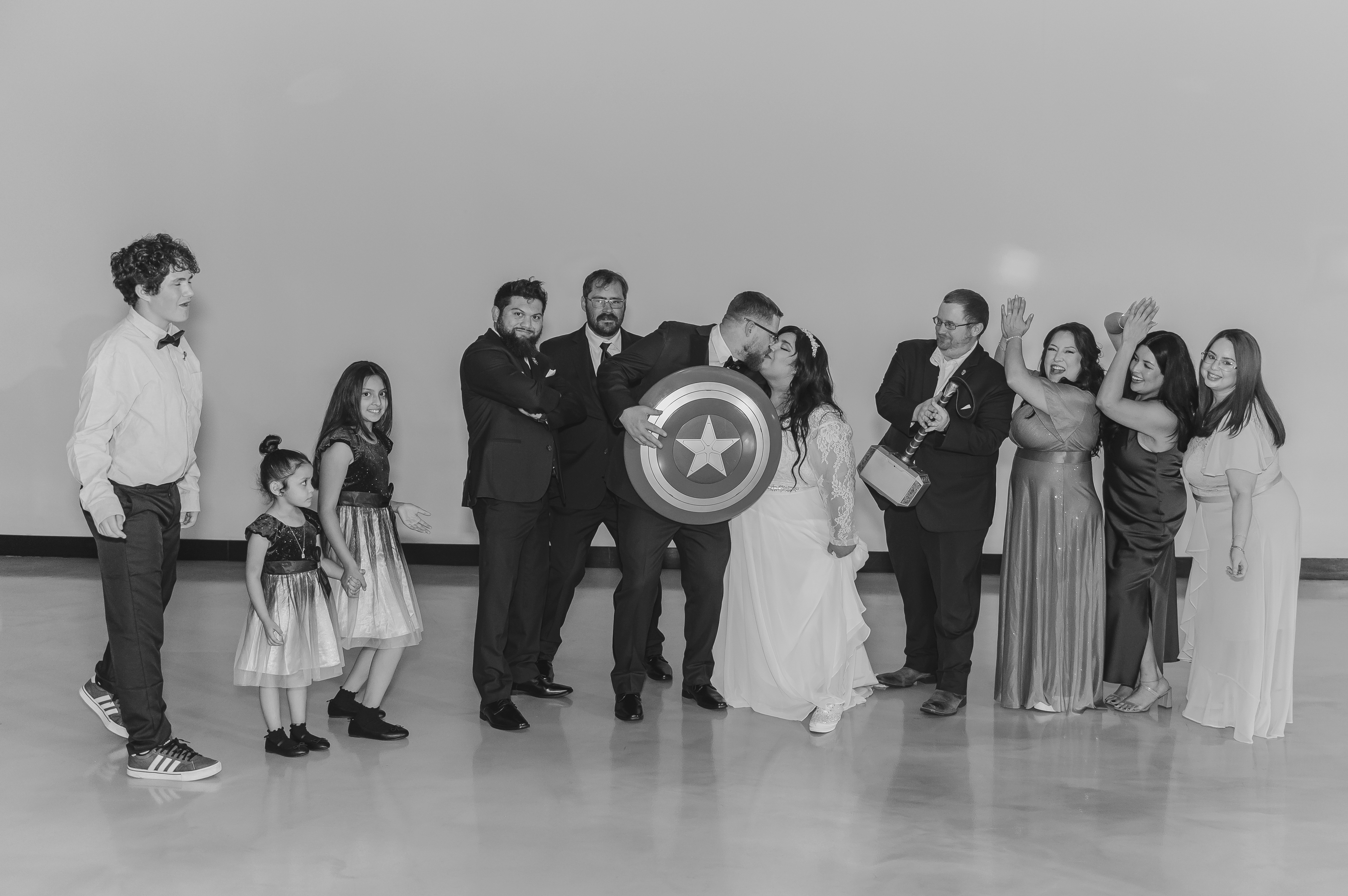 The day was filled with deeply personal touches. As fans of the Marvel Universe, Donald and his groomsmen wore character pins (with Donald sporting Captain America’s shield), while Melissa tucked a Captain Marvel pin into her dress.